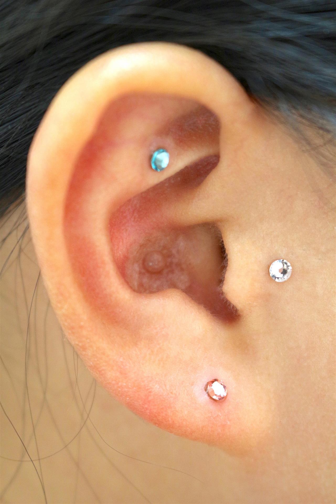 夏本番ですね。夏と言えば「ダイエット」ですよね(*^_^*) 食事制限に運動と地道にするのが一番良い方法なのでしょうが…(苦笑)もう少し手軽で取り入れやすい方法はないかな…、と思っている方!『イヤージュエリー』をお試しください。スワロフスキー付きのチタン粒をダイエットに効果がある耳のツボに貼るだけです(^o^)食事前に貼ったところを手で押してください。食欲を抑える効果が期待できます♪ 見た目にも可愛らしく、ピアスのように見えます。夏休みなので中学生・高校生でもファッション感覚でつけていただけます♡