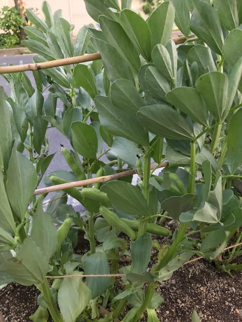 治療所前のプランターに、3月下旬頃そら豆の種を植えました。