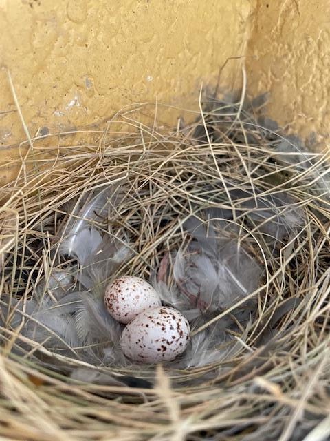 無事6月初旬に5羽ツバメが巣立って、間もなくして別のつがいが卵を2個生んでいました。今回はちょっと少なめやな~。