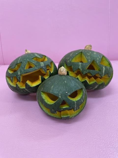 患者さんから頂いた3個のカボチャ🎃中をくり抜き顔を彫ってみました。ハロウィン👻まで2週間あるので、腐らないよう冷蔵庫と治療所のカウンターを行き来しています。