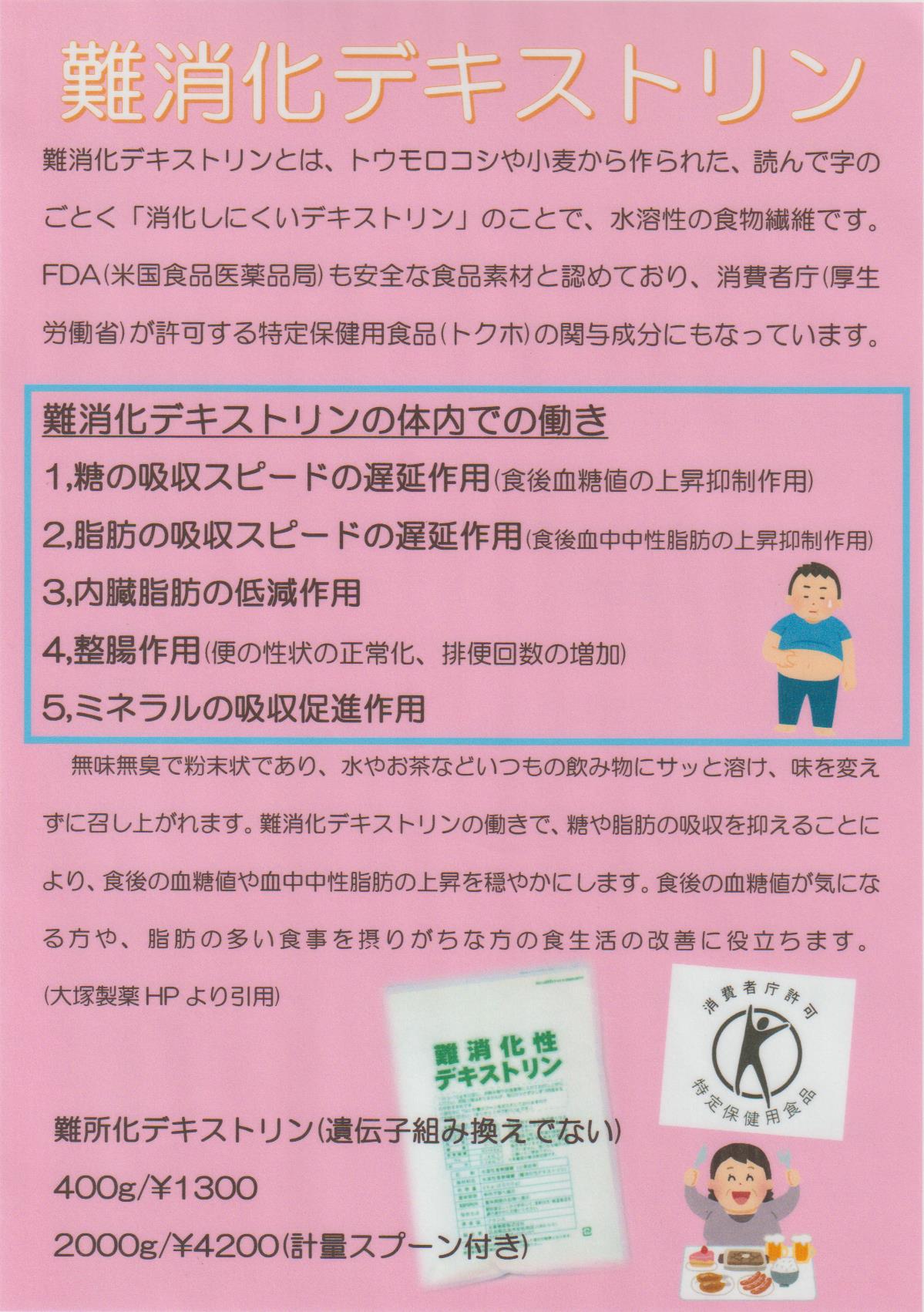 蒸し暑い日が続きます😓汗が蒸発しにくくなるので体温調節が難しく、だるさ・疲労感を感じやすいです。血流が良くなることで回復しやすくなるので入浴、お灸が効果的です。体内に蓄積された老廃物や毒素を排出する方法のひとつとして『難消化デキストリン』があります。腸内環境の改善や便秘解消、脂質・糖の吸収抑制、血糖値上昇抑制効果があります。受付にて販売していますのでお気軽にお声がけください☺️