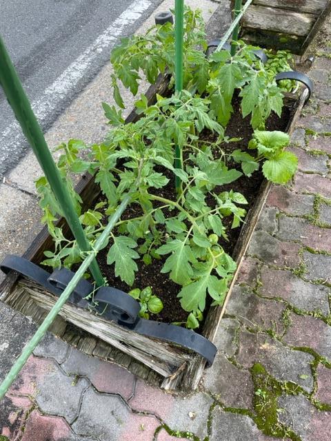 種から栽培したトマト、シソ、バジルの苗を植えて1ヶ月!ちょっとずつ大きくなってきました。