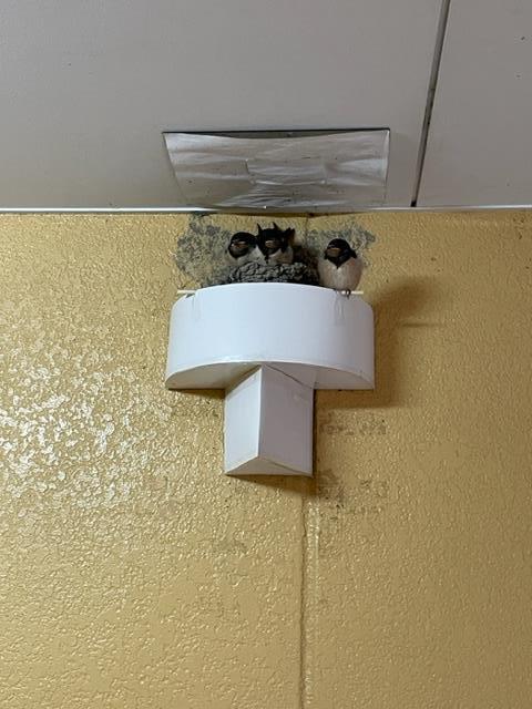 昨晩は5羽のツバメを確認することができましたが、昼間飛び回って今晩は3羽が最後のお宿に戻ってきました。おそらく明日には3羽とも巣立っていくと思います。また来年元気に戻ってきてね~👋