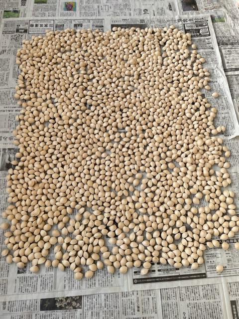 10月上旬から落ち始め、2回目は10月下旬からこつこつバケツに貯めること2~3週間。2000個(バケツ4杯分)貯まったので、今回も河原で踏んで種を実から剥がして、自宅に持ち帰り更に手洗い、1日🌞干しをして完成です!こうして見ると結構な量ですね(^_^;)。