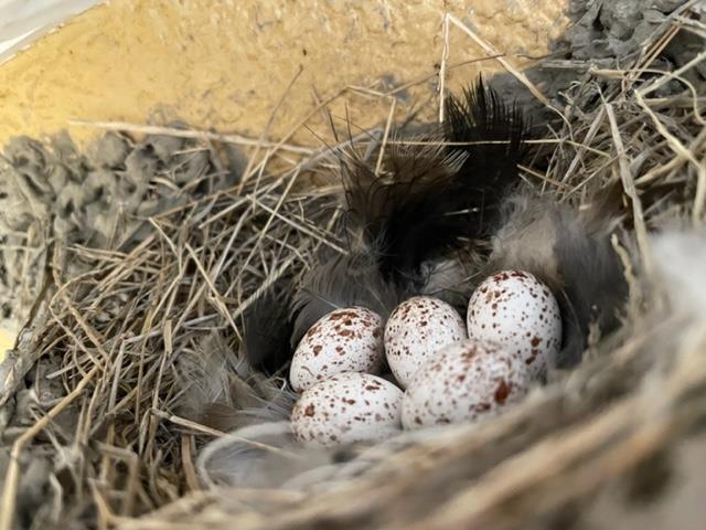 今年で11年連続でツバメが卵を生みました。毎年毎年同じ巣で卵(今回は5個)を生んでくれますが、今年も無事に巣立ってくれますように✨