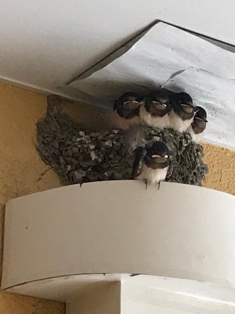 3日程前から昼間は自分たちで飛び回り、暗くなってから巣に戻って休むようで、今晩あたりが最後の夜になりそうです。写真では解りにくいですが、4羽確認することが出来ました。来年元気な姿を見れたらたいへん嬉しく思います。またね~👋